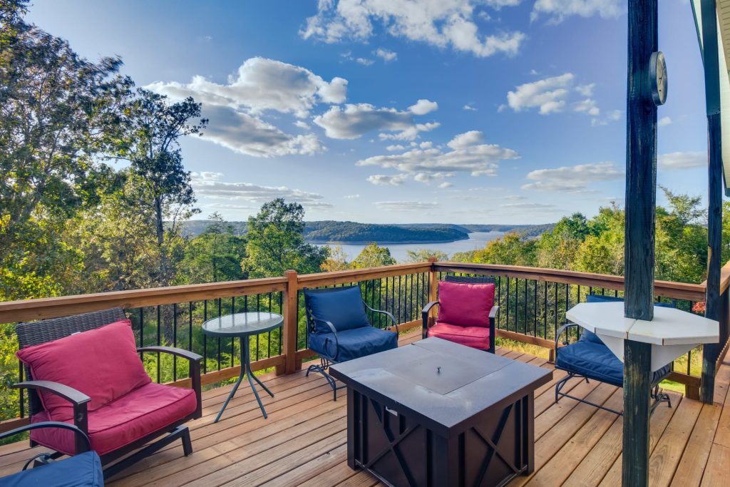 Outside you will find a wonderful firepit with a view of the lake along with plenty of room for Corn Hole or other outside games. Seating to relax can be found on the downstairs patio as well as oversized deck with stunning views of the lake!